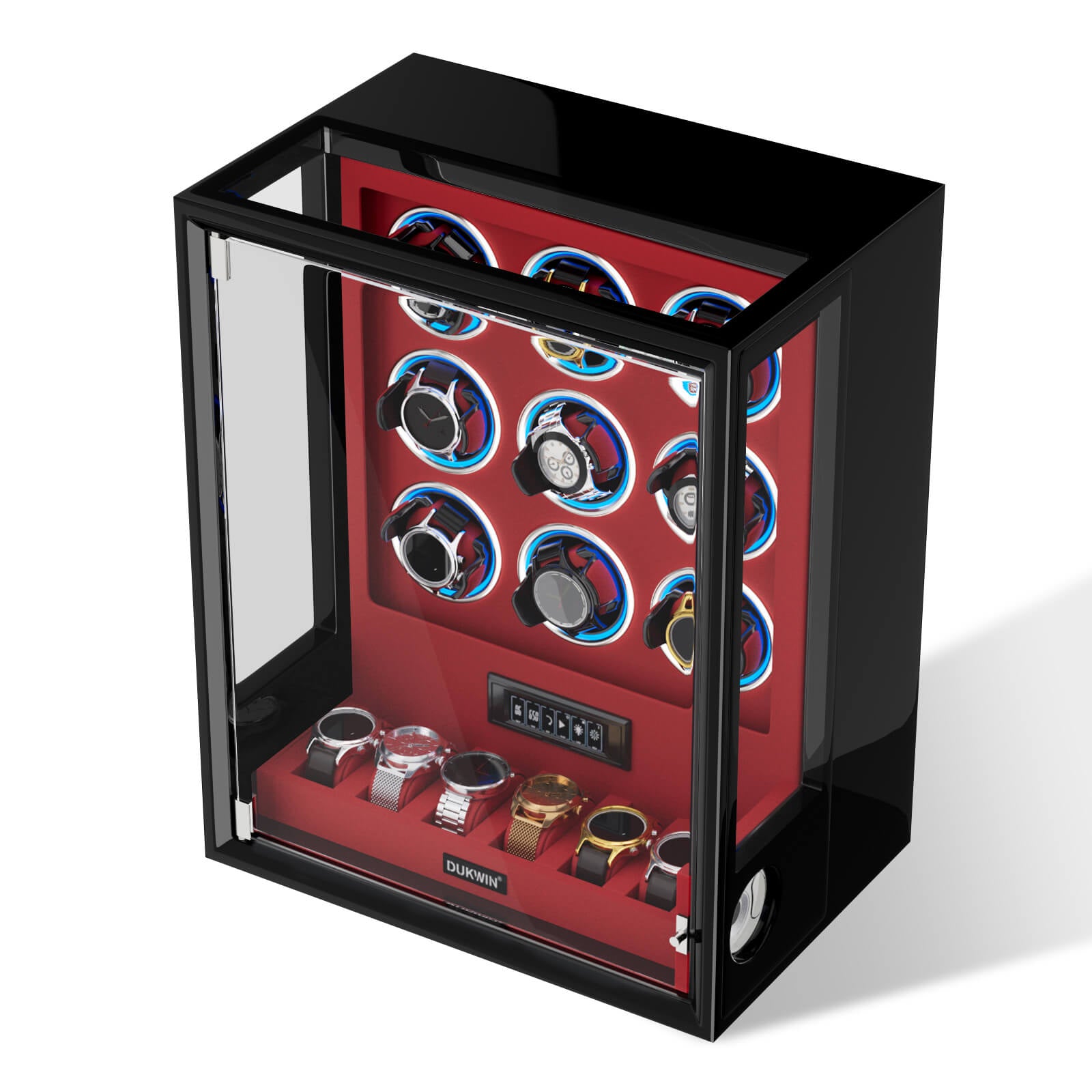 8 Remontoirs De Montres Avec 6 Montres Organisateur Cas Rotation Automatique - Rouge