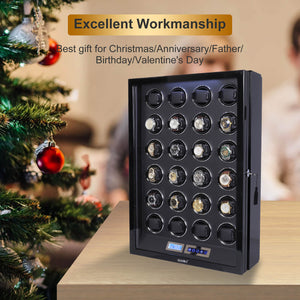 24 Watch Winder for Automatic Watches LCD Remote Control Quiet Mabuchi Motors