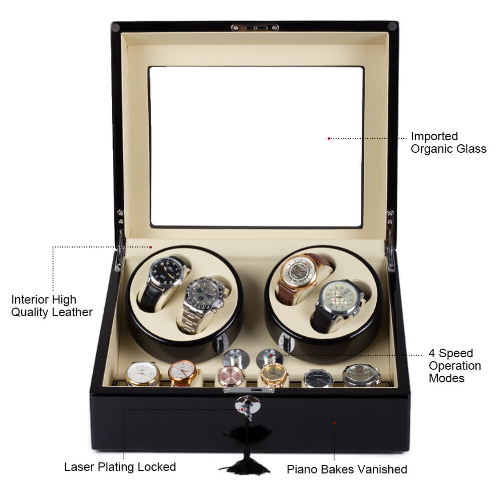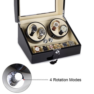 4 Watch Winder with 6 Storage Space with Quiet Mabuchi Motors - Black&White