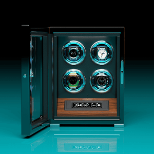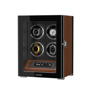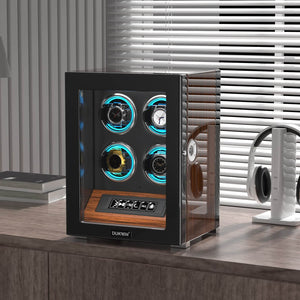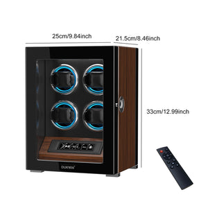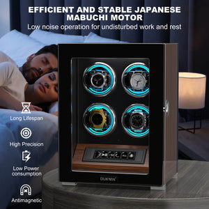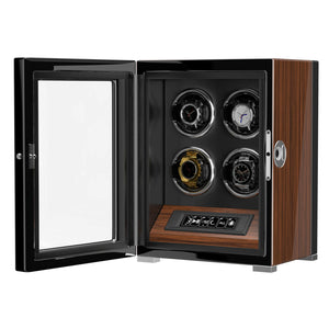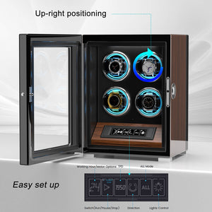 4 Watch Winders with Fingerprint Unlock RGB Light LCD Remote Control Ultra Quiet Motor - Walnut