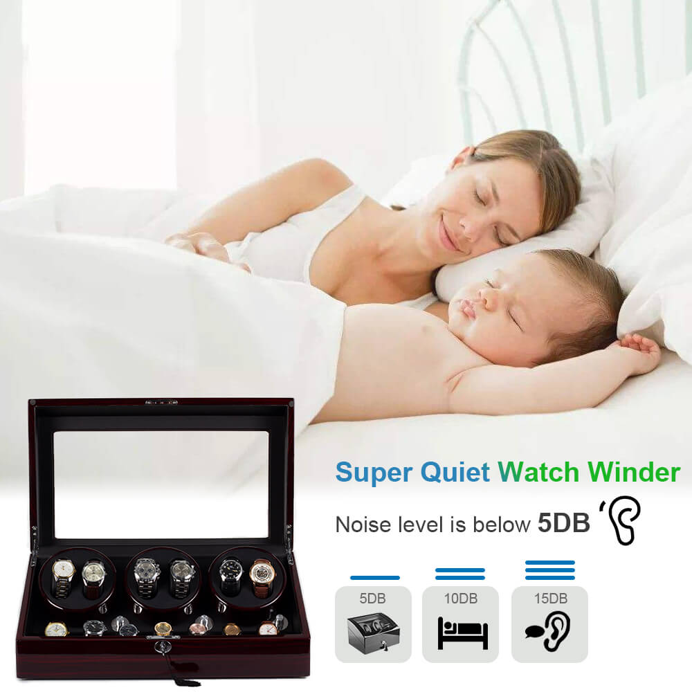 3. Extra storage case: This watch winder has 6 winder space and 7 storage space, which provide maximum flexibility.