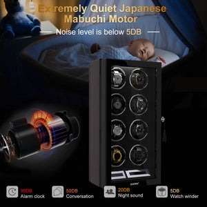 8 Watch Winder with LCD Touchscreen Remote Control Quiet Mabuchi Motors