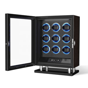 Special Edition- 9 Watch Winder with Upgraded Fingerprint UnLock RGB Light Large Watch Box