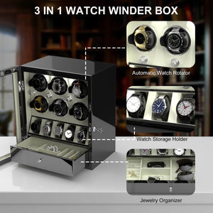 Unique Design: Maintaining the functional features of a traditional watch winders with an eye-catching perspective watch holder storage to display your watches. This peerless innovation design men watch rotator box will be perfect as a centrepiece in your house or shop.