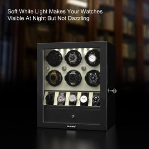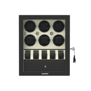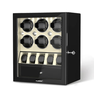 - This classic 6-watch winders from Dukwin presents the ideal solution for winding up to 6 watches at the same time and with a watch deck storage to display your another 5 watches. All presented in an elegant closed display case. Showcasing our usual commitment to quality design and engineering, this 6-watch winder incorporates a number of luxury features that make it stand out from the crowd.