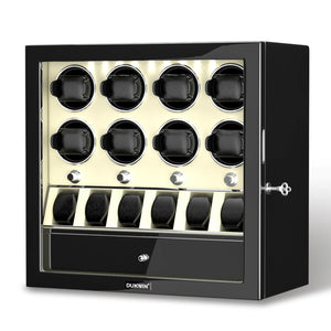 Material: Dukwin Automatic Watch Winder for 8 watches is made of handmade wooden with acrylic organic glass window, stylish piano-gloss exterior and the interior vegan leather.