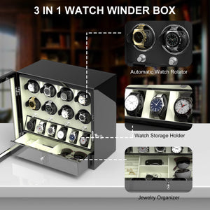 Unique Design: Maintaining the functional features of a traditional watch winders with an eye-catching perspective watch holder storage to display your watches. This peerless innovation design men watch rotator box will be perfect as a centrepiece in your house or shop. As you get ready for work, conveniently grab your watch and accessories for the day.