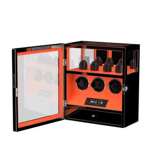 Fingerprint Lock 3 Watch Winders with Extra 4 Watches Storage LCD Remote Control - Flame Orange
