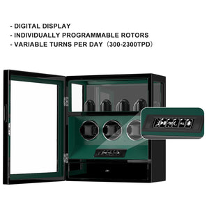 Fingerprint Lock 3 Watch Winders with Extra Watches Storage LCD Remote Control - Green