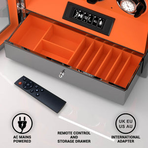 LCD and Remote Control: All information on the watch winder modes is shown. The touchscreen option and Remote Control make the setup process much easier.