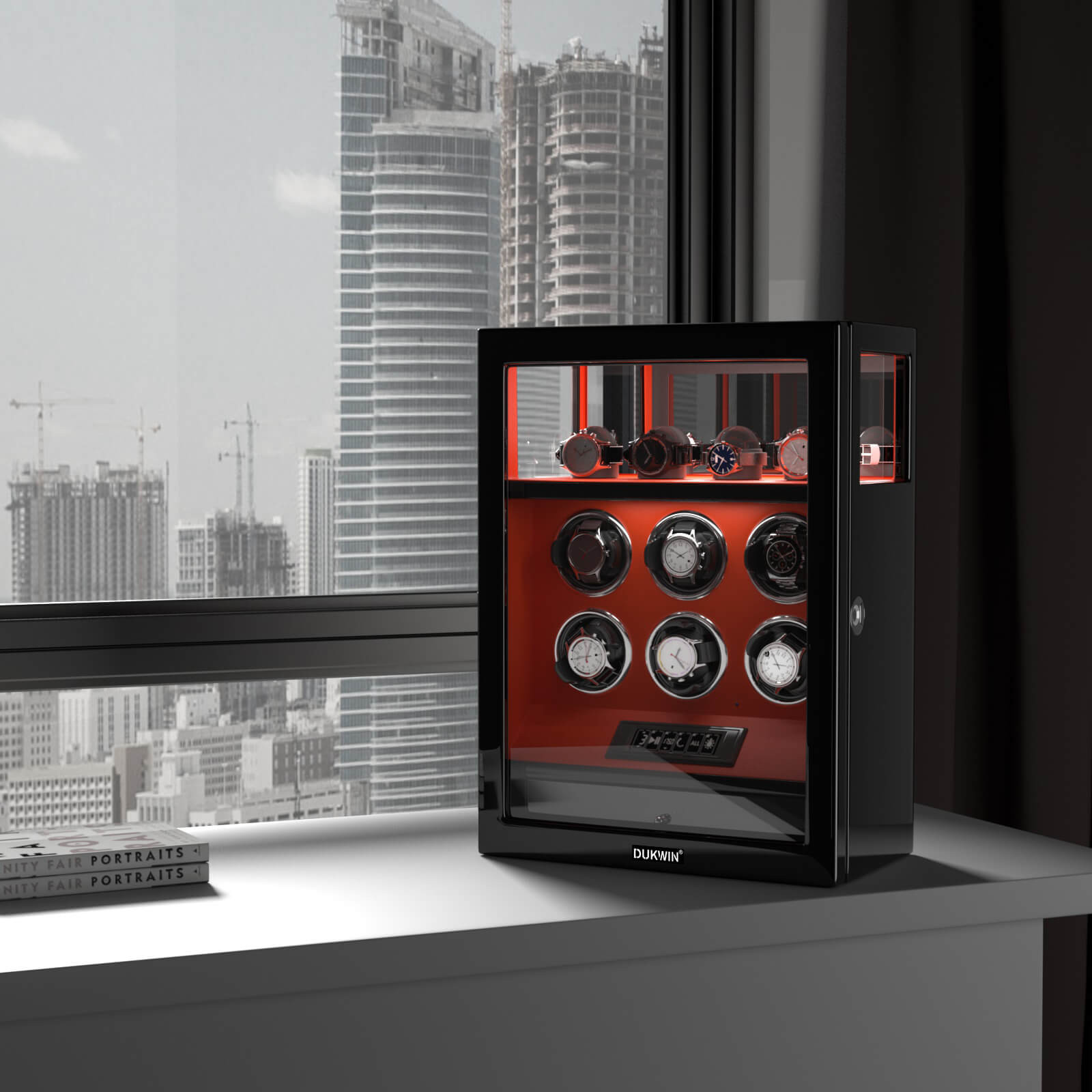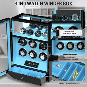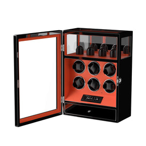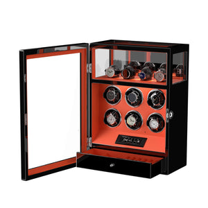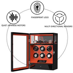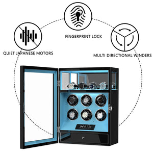 Fingerprint Lock 6 Watch Winders with Extra Watches Storage - Patented Design