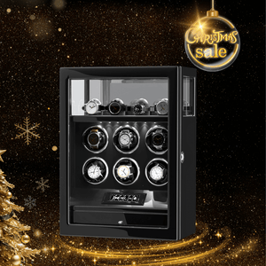 Fingerprint Lock 6 Watch Winders with Extra Watches Storage LCD Remote Control - Black