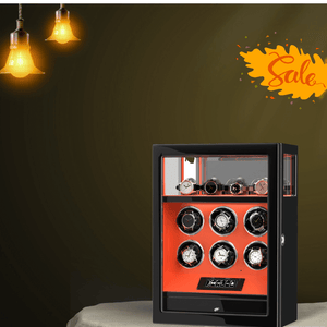 Fingerprint Lock 6 Watch Winders with Extra Watches Storage LCD Remote Control - Flame Orange