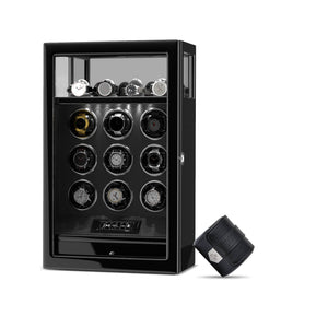 WATCH STORAGE: Store all your watches and accessories in one place. This watch winders combines 3/6/9 winding modules to rotate your watches, 4 watch stand holders to display your watches and 1 drawer to store your accessories. Simply grab all that you need before you go.