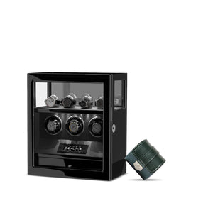 LCD and REMOTE CONTROL: Shows all information on the watch winders modes. Touchscreen option and Remote Control make a setup process much easier.
