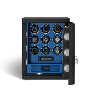The Obsidian Veil Series watch winder safe is a multifunctional lockable 9-unit watch winding system with additional storage, designed to securely and reliably wind your timepiece collection.