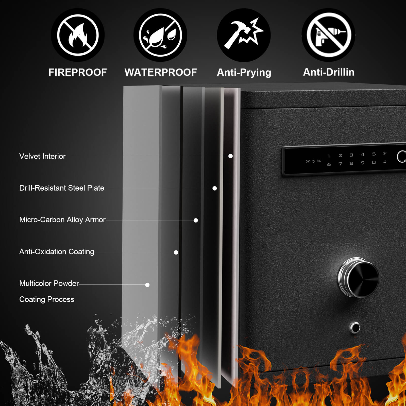 | Material | - Drill-resistant steel plate - Micro-carbon alloy armor - Anti-oxidation coating - Velvet lining interior |