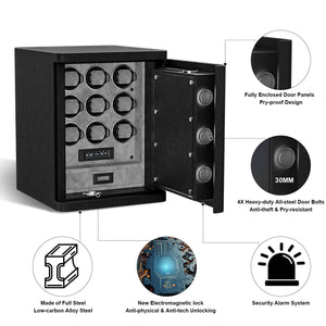 Heavy Full-Steel 9 Watch Safe – Fingerprint Access, Digital Keypad Lock & RGB Illumination - Gray