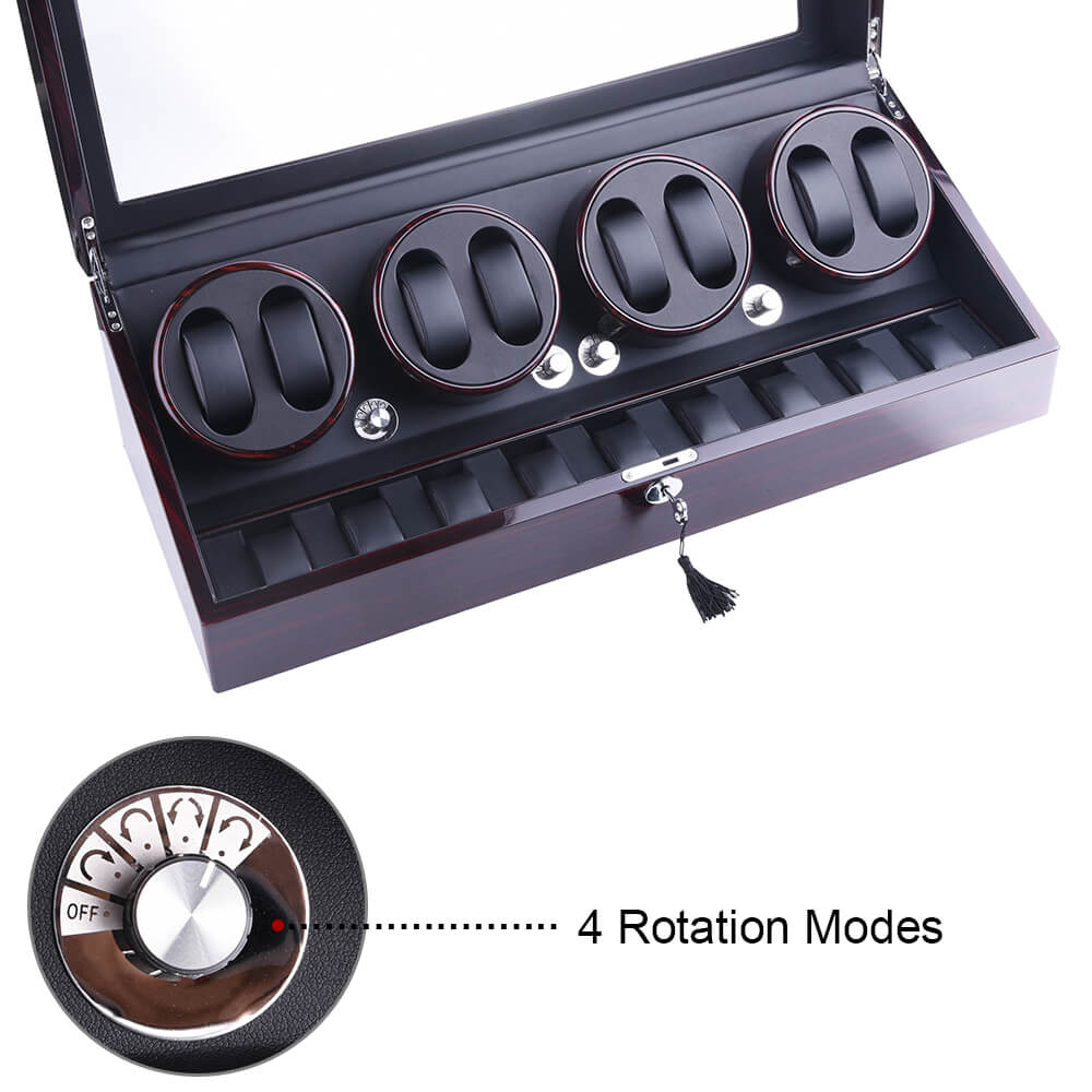 Large Size - 8 Watch Winder Large Storage Quiet Mabuchi Motors with Lock - Ebony