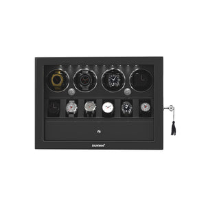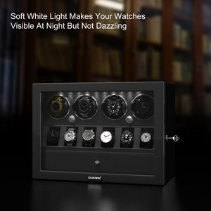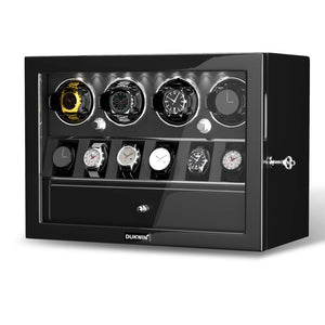 - This stylish 4-watch winders from Dukwin presents the ideal solution for winding up to 4 watches at the same time and with a watch deck storage to display your another 6 watches. All presented in an elegant closed display case. Showcasing our usual commitment to quality design and engineering, this 4-watch winder incorporates a number of luxury features that make it stand out from the crowd.