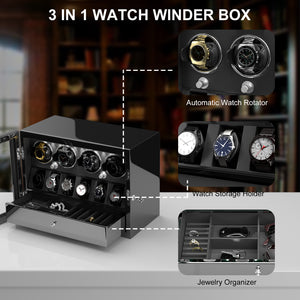 4 Watch Winders for Automatic Watches with 6 Watches Display Organizer