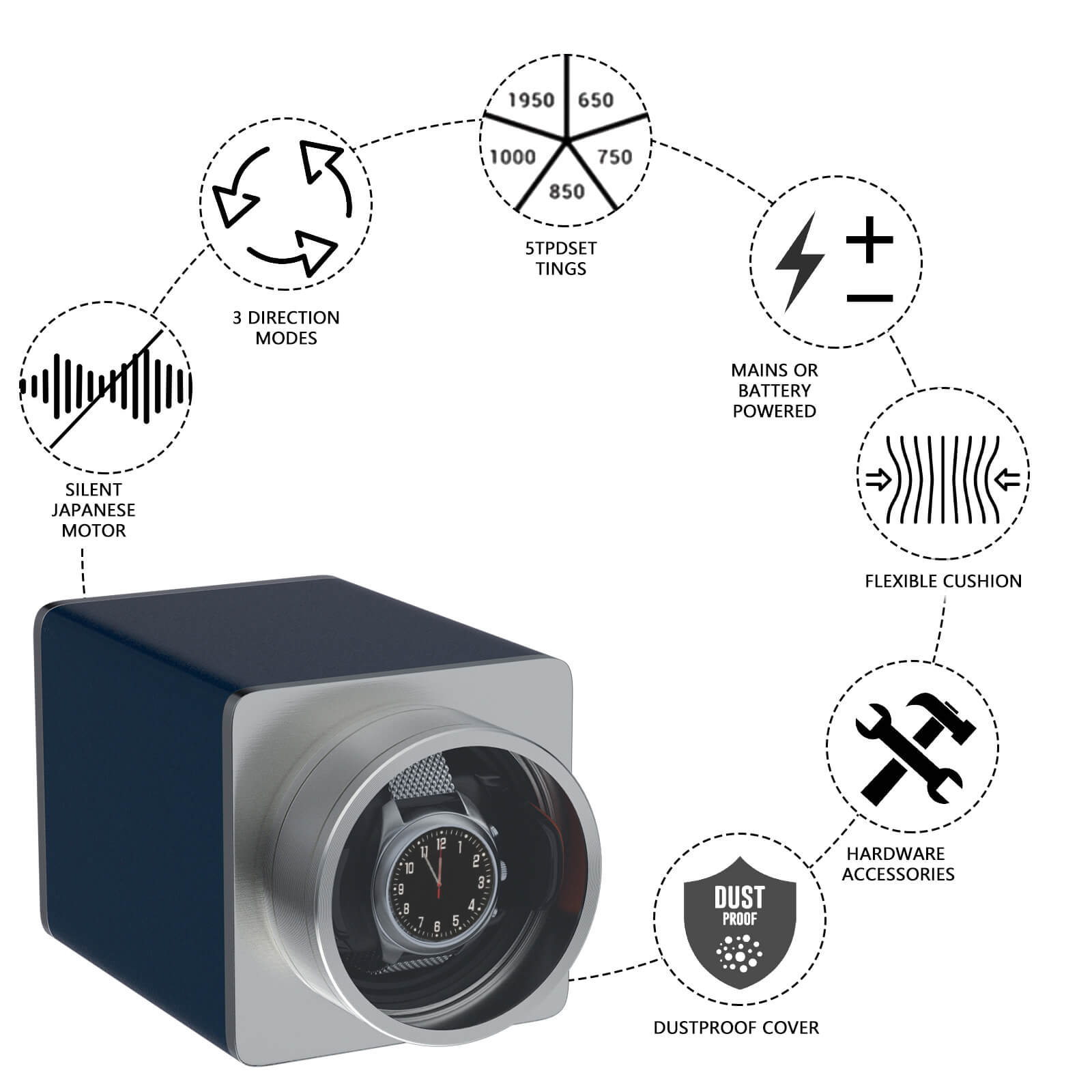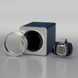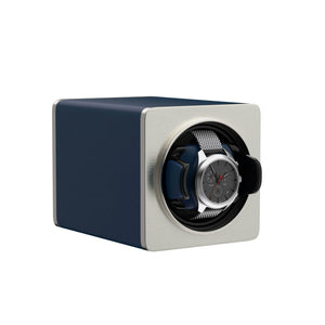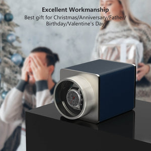 Single Watch Winder for Automatic Watches Vegan Leather Quiet Mabuchi Motors for Travel- Blue