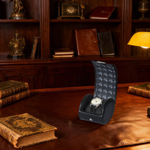 Single Watch Roll is crafted with eco-friendly vegan leather, finished with our signature DUKWIN logo metallic closure. The interior is lined with DUKWIN’s iconic patterned fabric, while the watch cushions are wrapped in soft faux suede. Designed exclusively to hold 1 watch, this compact roll is perfect for secure travel and everyday storage.