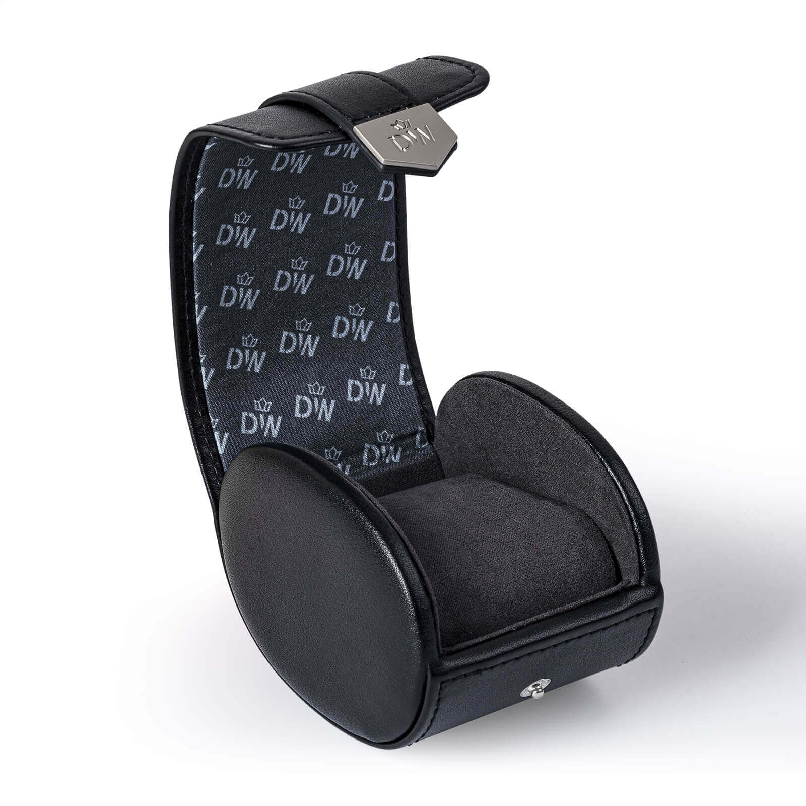 Single Watch Roll is crafted with eco-friendly vegan leather, finished with our signature DUKWIN logo metallic closure. The interior is lined with DUKWIN’s iconic patterned fabric, while the two watch cushions are wrapped in soft faux suede. Designed exclusively to hold two timepieces, this compact roll is perfect for secure travel and everyday storage.