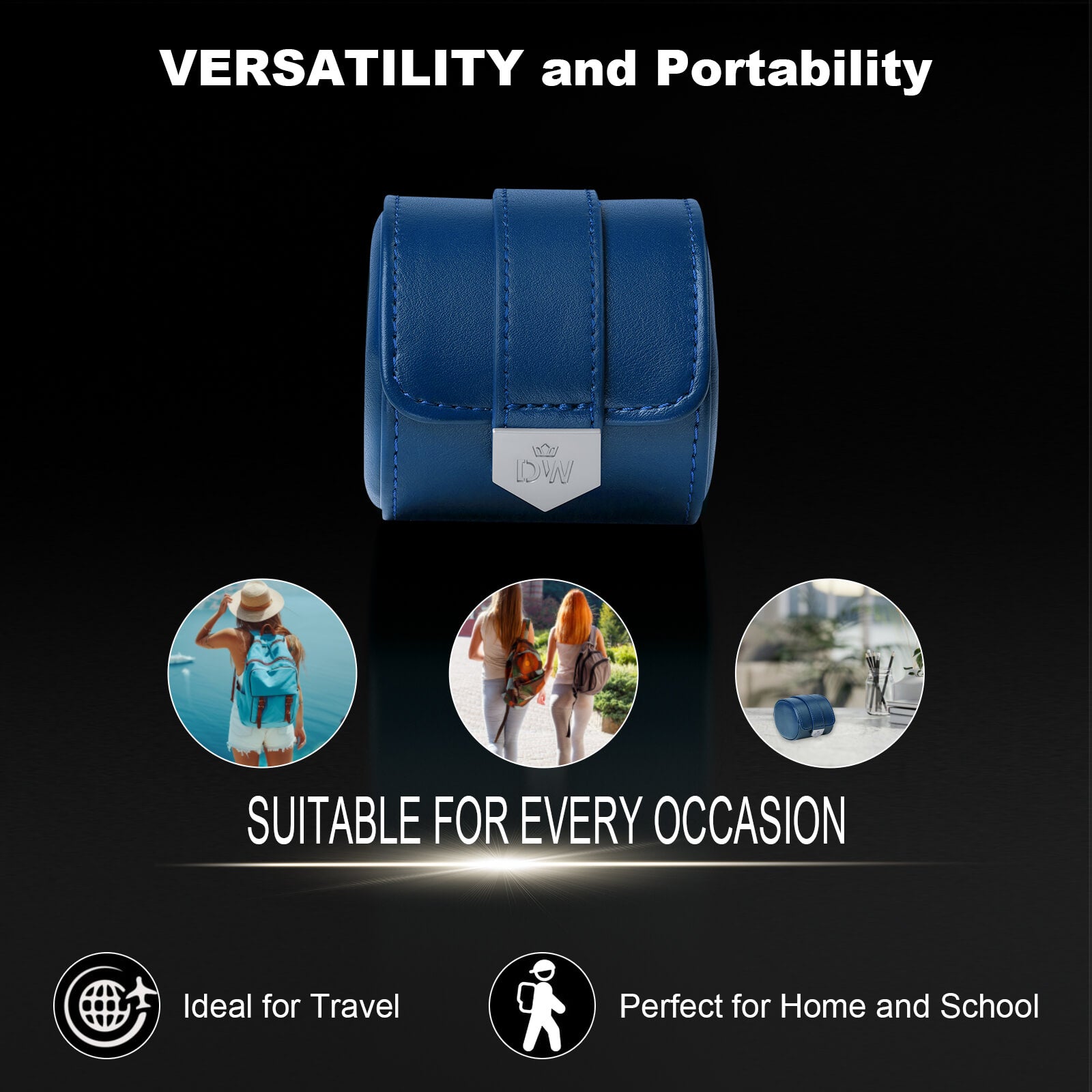 Vegan Leather Single Watch Roll Travel Case - Blue
