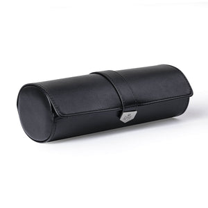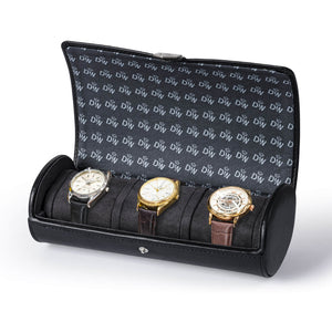 Vegan Leather Triple Watch Roll Travel Case with Hidden Jewelry Capsule - Black