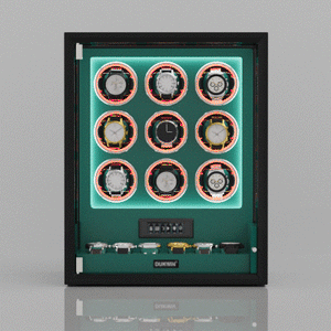 Patented Innovation: The VIRTUOSO watch winder for 9 watches impresses with the latest technology and outstanding workmanship, ensuring that each individual watch winder meets the highest standards, the selected solid wood is finished with the utmost care and refined craftsmanship with an exquisite piano lacquer and tempered glass door.