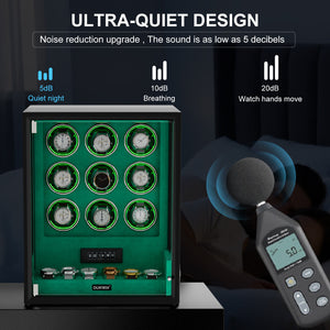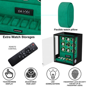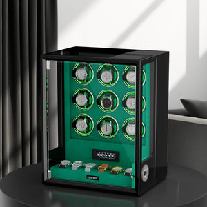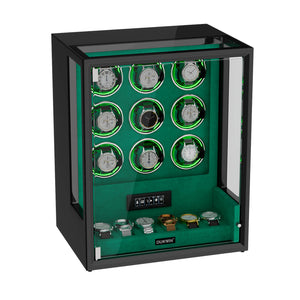 Home VIRTUOSO – Premium 9 Watch Winder with Fingerprint Lock & Extra Storage - Green