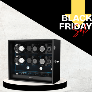 Remontoir 12 + 6 montres avec rangements supplémentaires Moteurs silencieux Aurora Blue Light - Noir