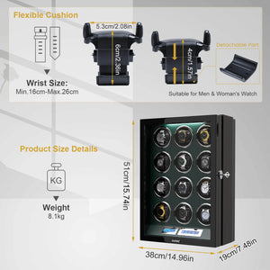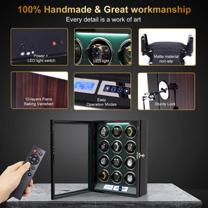Remontoir de 12 montres pour montres automatiques, télécommande LCD, moteurs Mabuchi silencieux, grand rotateur