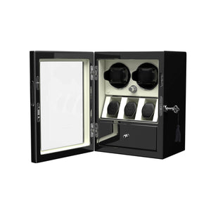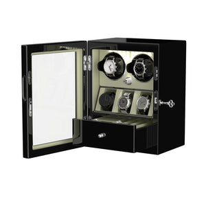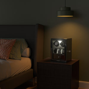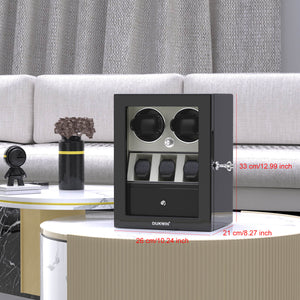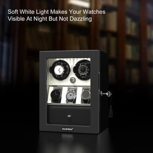 Matériau : Le remontoir automatique Dukwin pour 2 montres est fabriqué en bois fait à la main avec une fenêtre en verre organique acrylique, un extérieur élégant en piano brillant et un intérieur en cuir végétalien.