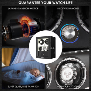 Options de rotation : Quatre modes de remontage sont disponibles, adaptés à différentes marques de montres. La montre peut se déplacer vers la gauche, la droite ou dans des directions alternées à différents intervalles.