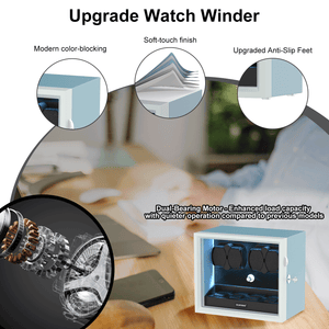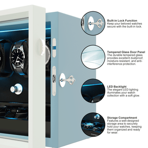 Remontoir 4 + 4 montres avec rangements supplémentaires Moteurs silencieux Aurora Blue Light - Noir