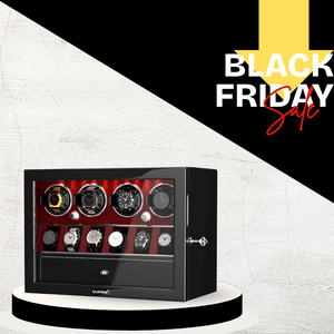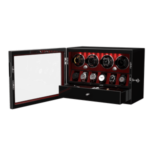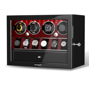 - Cet élégant remontoir Dukwin pour 4 montres est la solution idéale pour remonter jusqu'à 4 montres simultanément, avec un rangement pour 6 autres. Le tout est présenté dans un élégant coffret de présentation fermé. Fidèle à notre engagement constant pour une conception et une ingénierie de qualité, ce remontoir pour 4 montres intègre de nombreuses fonctionnalités luxueuses qui le distinguent des autres.