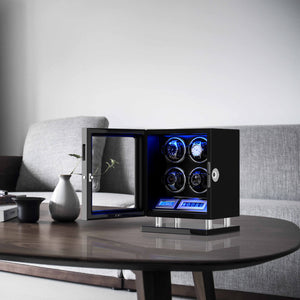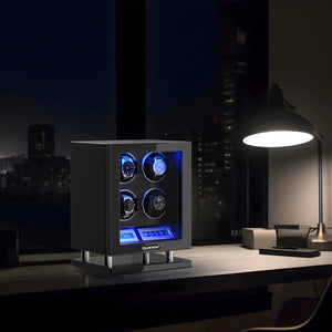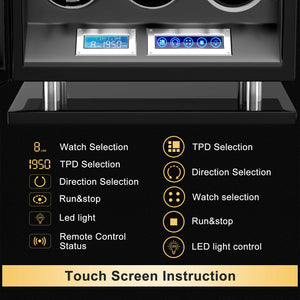 • LCD et TÉLÉCOMMANDE : le contrôle de l'écran tactile LCD vous permet de régler chaque remontoir sur les paramètres souhaités pour votre montre. En outre, vous pouvez également le contrôler par télécommande, régler facilement les programmes et allumer/éteindre la lumière sans ouvrir la porte.