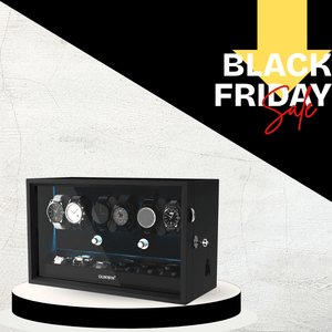 Remontoir 6 + 6 montres avec rangements supplémentaires Moteurs silencieux Aurora Blue Light - Noir