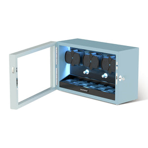 Maison Remontoir 6 + 6 montres avec rangements supplémentaires Moteurs silencieux Aurora Blue Light - Noir