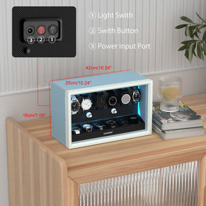 Remontoir 6 + 6 montres avec rangements supplémentaires Moteurs silencieux Aurora Blue Light - Noir