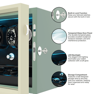 Remontoir 6 + 6 montres avec rangements supplémentaires Moteurs silencieux Aurora Blue Light - Noir