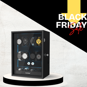 Remontoir 8 + 4 montres avec rangements supplémentaires Moteurs silencieux Aurora Blue Light - Noir