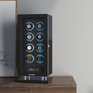 Édition spéciale - Remontoir de 8 montres avec entrée d'empreintes digitales, lumière RVB, télécommande LCD