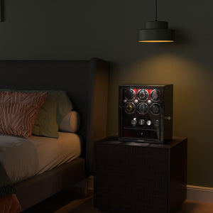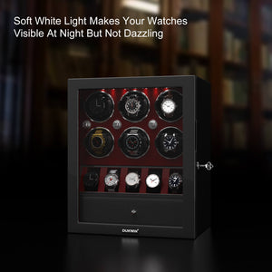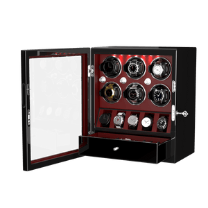 - Ce remontoir classique Dukwin pour 6 montres est la solution idéale pour remonter jusqu'à 6 montres simultanément, avec un rangement pour 5 autres. Le tout est présenté dans un élégant coffret de présentation fermé. Fidèle à notre engagement constant pour une conception et une ingénierie de qualité, ce remontoir pour 6 montres intègre de nombreuses fonctionnalités luxueuses qui le distinguent des autres.