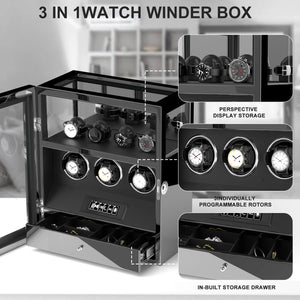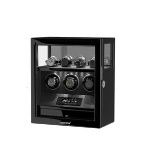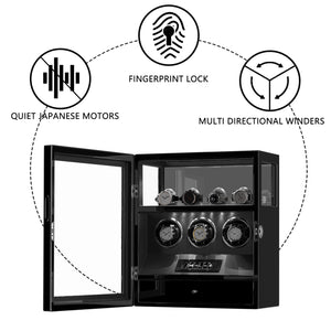 Verrouillage D'empreinte Digitale 3 Remontoirs De Montres Avec Télécommande LCD De Stockage Supplémentaire De 4 Montres - Noir
