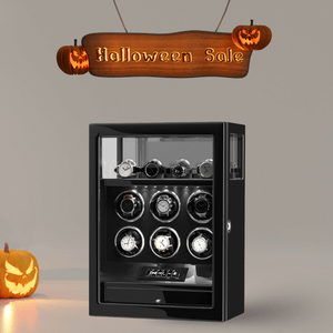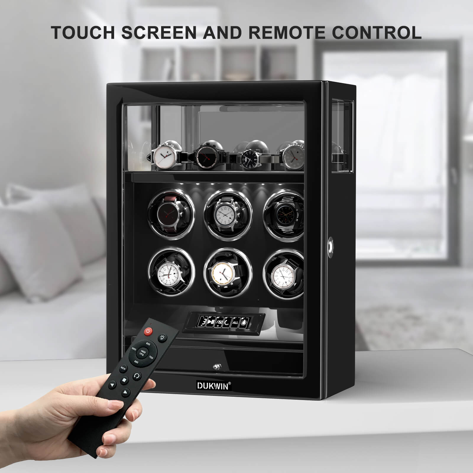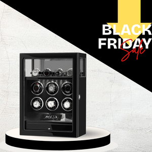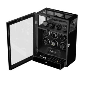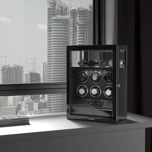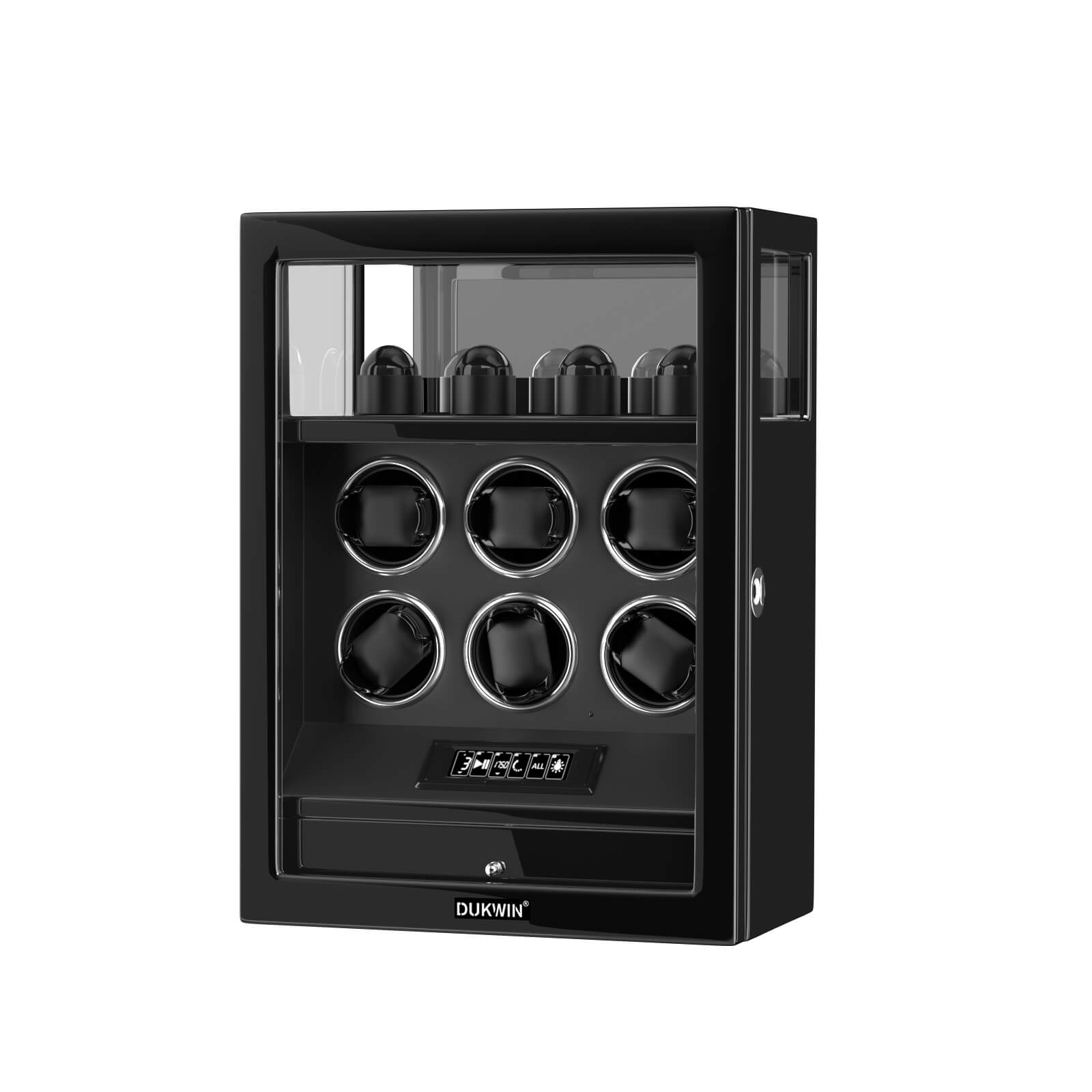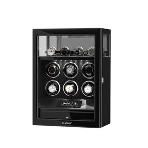 Verrouillage D'empreintes Digitales 6 Remontoirs De Montres Avec Télécommande LCD De Stockage De Montres Supplémentaires - Noir