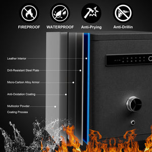 | Fonctionnalités supplémentaires | - Écran tactile intelligent - Alarme intelligente - Démarrage à distance de l'application - Éclairage intérieur LED et lumière RVB - Scanner biométrique avancé capable de stocker 30 empreintes digitales uniques - Une batterie lithium-ion rechargeable fournit une alimentation mobile jusqu'à 4 à 6 mois - Résistant au feu pendant 30 minutes jusqu'à 1200° F |