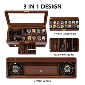Verrouillage D'empreinte Digitale 3 Remontoirs De Montres Avec Télécommande LCD De Stockage Supplémentaire De 4 Montres - Noir